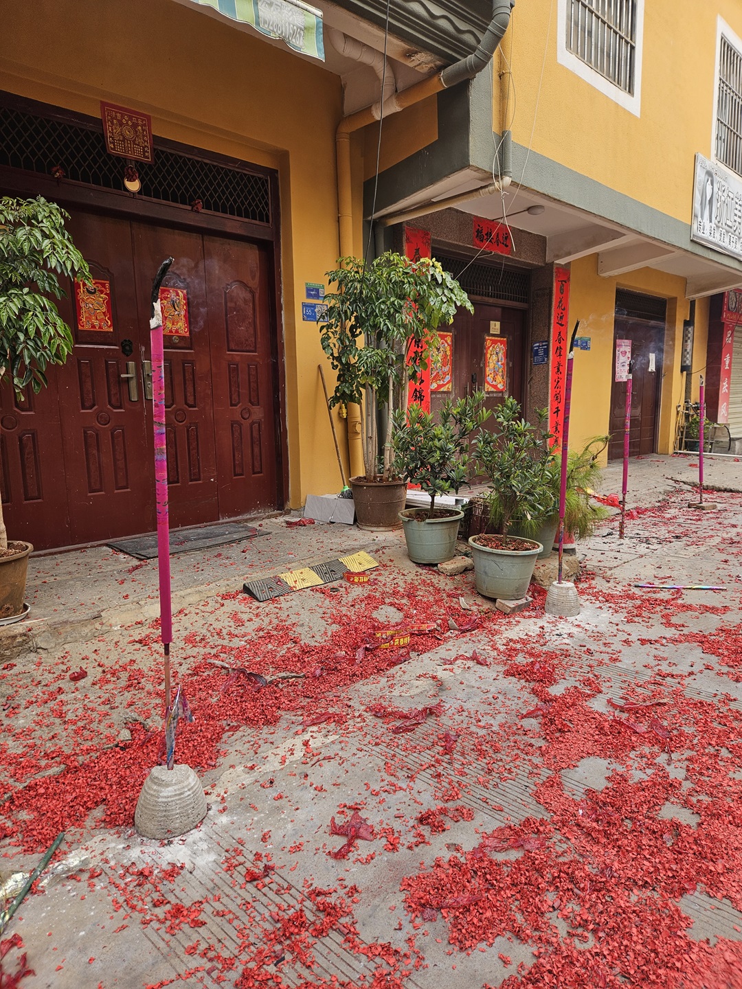 Les lanternes rouges sont plus nombreuses que d’habitude les Dragons sont spécialement mis à l’honneur cette année. Feux d’artifice et pétards explosent à toute heure et sur plusieurs jours, me faisant sursauter dans mon sommeil plus d’une fois. Ils sont encore plus puissants que ceux observés jusqu’à maintenant, les démons ont assurément fui comme escompté. Des bandeaux rouges portant les vœux pour la nouvelle année ornent les entrées des commerces et habitations et on fait brûler de gros encens purificateurs. Une bonne santé financière est le souhait le plus répandu, sans aucun tabou contrairement à l’idée d’un sujet problématique qu’on a souvent en Occident. Dans la pensée chinoise, ce qui enrichit n’est pas le fait de posséder de l’argent mais plutôt de le faire circuler et il est vertueux de contribuer à l’abondance collective. Avoir du flouze est favorable et cela s’entretient, au même titre qu’une bonne vitalité physique.
