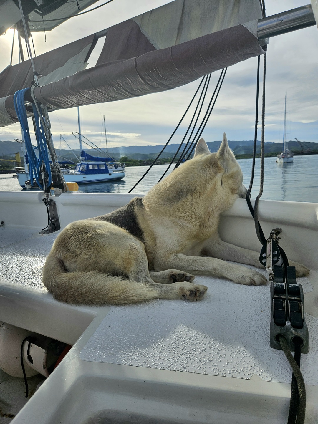 Un matin de plus avec l’esprit brouillé, cerveau omelette ou spaghetti. Envie de dormir, encore, de longues heures ou même quelques minutes seulement. En mon corps s’affrontent transpiration intense, soif ardente et besoin pressant d’aller aux toilettes. Je ne sais pas laquelle de ces sensations me tire hors du lit mais ça y est, le sommeil est vaincu. Aucune idée de l’heure qu’il est, pas plus d’avis sur la date ni le nombre de jours passés ici. Au fond, cela m’importe peu. Le temps s’écoule de manière déformée, irrégulière, dans une lenteur d’une rapidité folle. Les jours se suivent et se ressemblent, pas grand-chose à faire à part maintenir la propreté du Bucanero et assurer notre survie. Gratter la coque sous l’eau, cuisiner, faire le ménage, la vaisselle, nettoyer les crottes de nos compagnons chien et chatte à bord, Buca et Touline. Le reste du temps, on s’occupe chacun de notre côté. Ou ensemble, selon l’humeur, le capitaine, ma co-volontaire et moi.