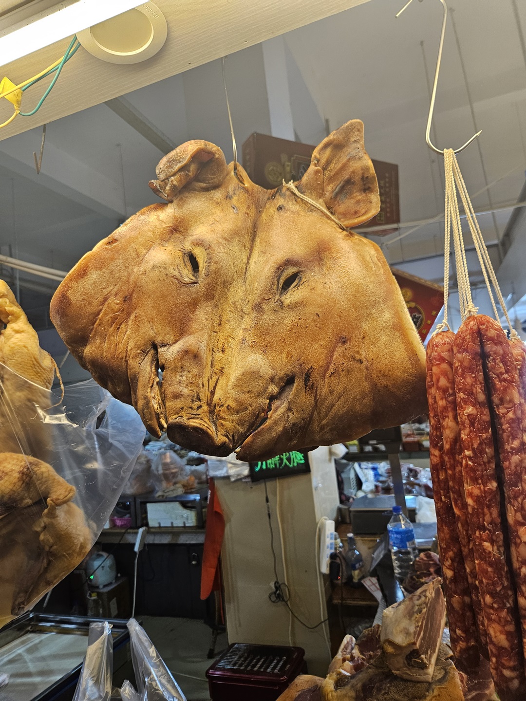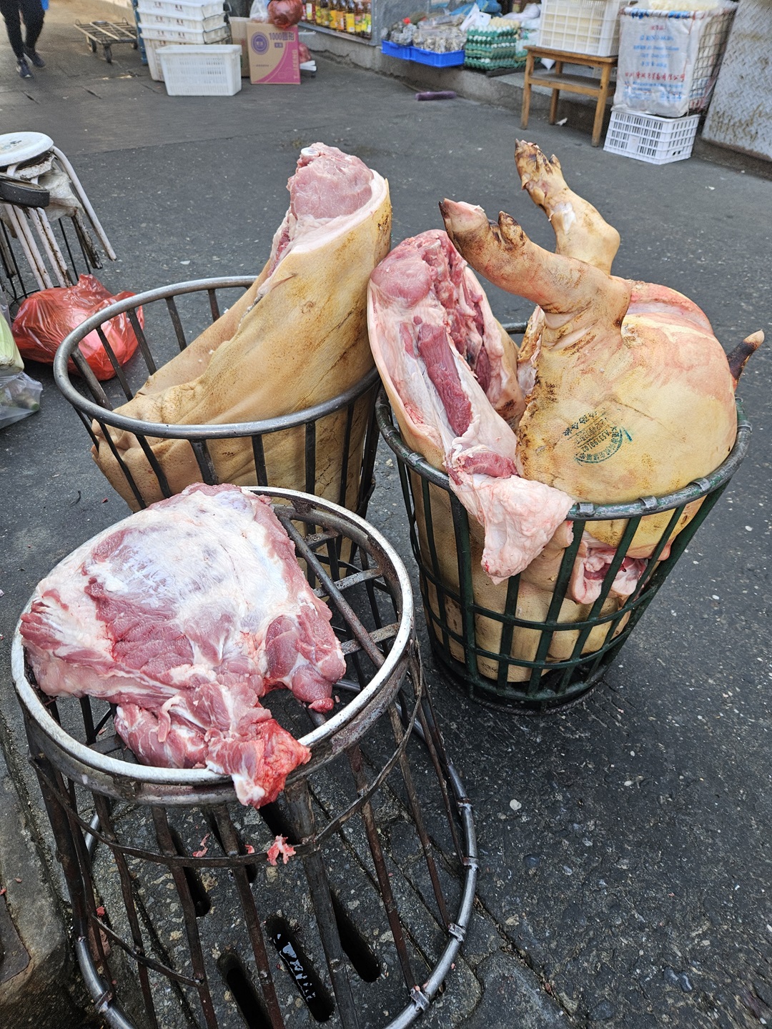 J’ai eu la chance de goûter à ne nombreux fruits et légumes jamais vus auparavant. Certaines saveurs ne ressemblent à rien de ce que je connais et déboussolent mes papilles gustatives. Globalement j’aime tout, avec quelques petites préférences. Ce n’est pas le cas des œufs de 100 ans qui me laissent un peu dubitative et surtout de la viande. Quel vaste sujet, surtout ici en Chine. Voici quelques exemples de ce que j’ai eu l’occasion de goûter, parfois involontairement. Intestins, peau de porc, sang gélatineux, aorte de porc, estomac de bœuf, gorge de porc en lamelles, jus de rumination de vache en sauce, gelée de carapace de tortue aux herbes médicinales en dessert, sans compter les horreurs que j’ai refusé de mettre dans ma bouche. Certains avaient bon goût il faut l’admettre, d’autres m’écœurent du seul fait de les évoquer. La façon de cuisiner est très différente également. Souvent coupé grossièrement, on recrache les os ou autre partie non digestibles dans une petite assiette prévue à cet effet. Mes compagnons s’amusent bien de me voir grimacer, ils commandent des bizarreries qu’ils me convainquent de goûter m’assurant que c’est délicieux. Et ils sont sincères ! Je m’étonne de leur penchant pour ces aliments. Pensez à n’importe quoi, cela devrait se trouver en Chine, tout fantasme culinaire peut être assouvi ici. Sur les stands de marché on aperçoit crapauds dépouillés, pattes de poules à toutes les sauces, abats à gogo, pieds de porcs, langues, têtes entières, crustacés étranges, insectes et j’en passe. Au moins on se rend facilement compte de ce que l’on consomme, le tout étant fraîchement préparé sur place, évidé et découpé devant nos yeux. Je suis écœurée, l’odeur de viande fraîche me fait des haut le cœur. Je ne regrette pas ces expériences culinaires qui font partie de la découverte culturelle. D’autant plus intéressant que cela me pousse à tenter une nouvelle expérience, je deviens végétarienne. J’y avais déjà pensé pour de nombreuses raisons qu’il est inutile d’évoquer et je suis très satisfaite d’avoir franchis le pas. Il faut dire qu’en Chine c’est assez compliqué, la viande étant un ingrédient majeur, carrément plus consommé que le riz. Il est primordial de bien insister sur le fait de ne pas manger de viande, peu importe ce que l’on commande, car il y en a partout même lorsque l’on ne s’en doute pas. L’omniprésence de chair animale ne fait qu’augmenter ma motivation à ne pas en consommer. Je préfère sincèrement les légumes, les œufs et le tofu. La seule chose qui me manque légèrement c’est un bon morceau de fromage ! Tout se passe bien, même lorsque les amis un peu déçus essayent de me convaincre lorsqu’on partage un hot pot. Cette expérience me satisfait et je compte la poursuivre, je me sens apaisée. Cela peut être temporaire, tout comme cela peut s’ancrer de manière définitive dans mes habitudes. Encore une fois je ne ferme aucune porte.