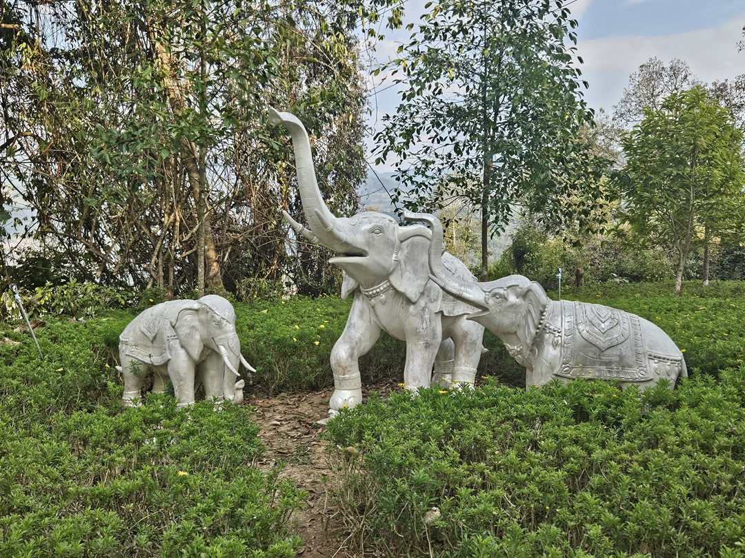 Cette région est fortement imprégnée du style sud-asiatique. L’architecture comporte de nombreuses pointes et arrondis, dorures et maints éléphants qui feraient presque oublier les dragons. C’est très différent du style chinois tel que représenté de façon générale et on s’imagine facilement être ailleurs. Bien que l’environnement soit très agréable, je suis vite appelée à poursuivre en direction des montagnes. Je préfère donc suivre cette envie et ne pas m’attarder ici.